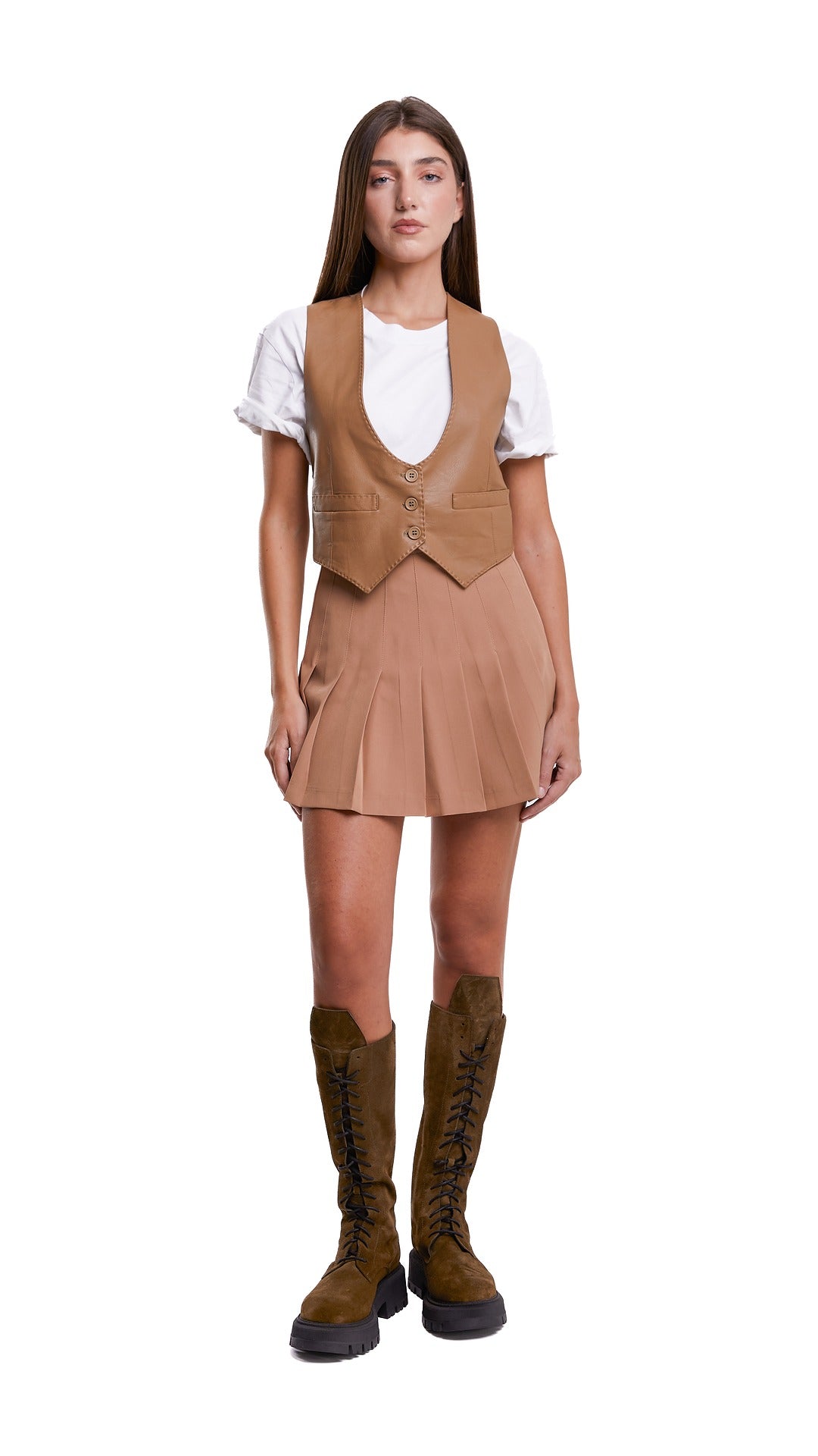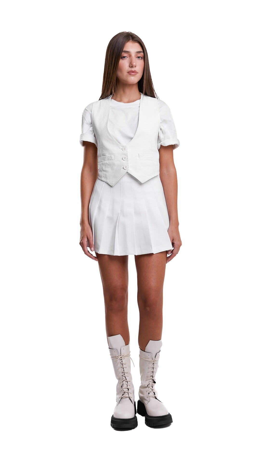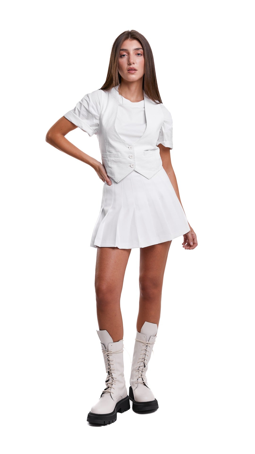 La gonna Atena, realizzata interamente in Italia, è composta al 100% da cotone di alta qualità a pieghe, per un look elegante e confortevole.