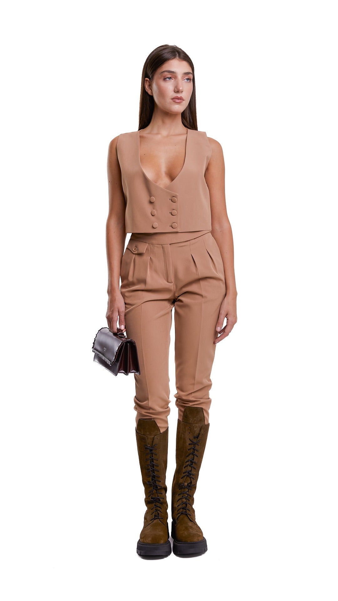 I pantaloni Olimpia, realizzati in morbido crêpe e rifiniti in pregiato raso 100% Made in Italy, uniscono eleganza e comfort.