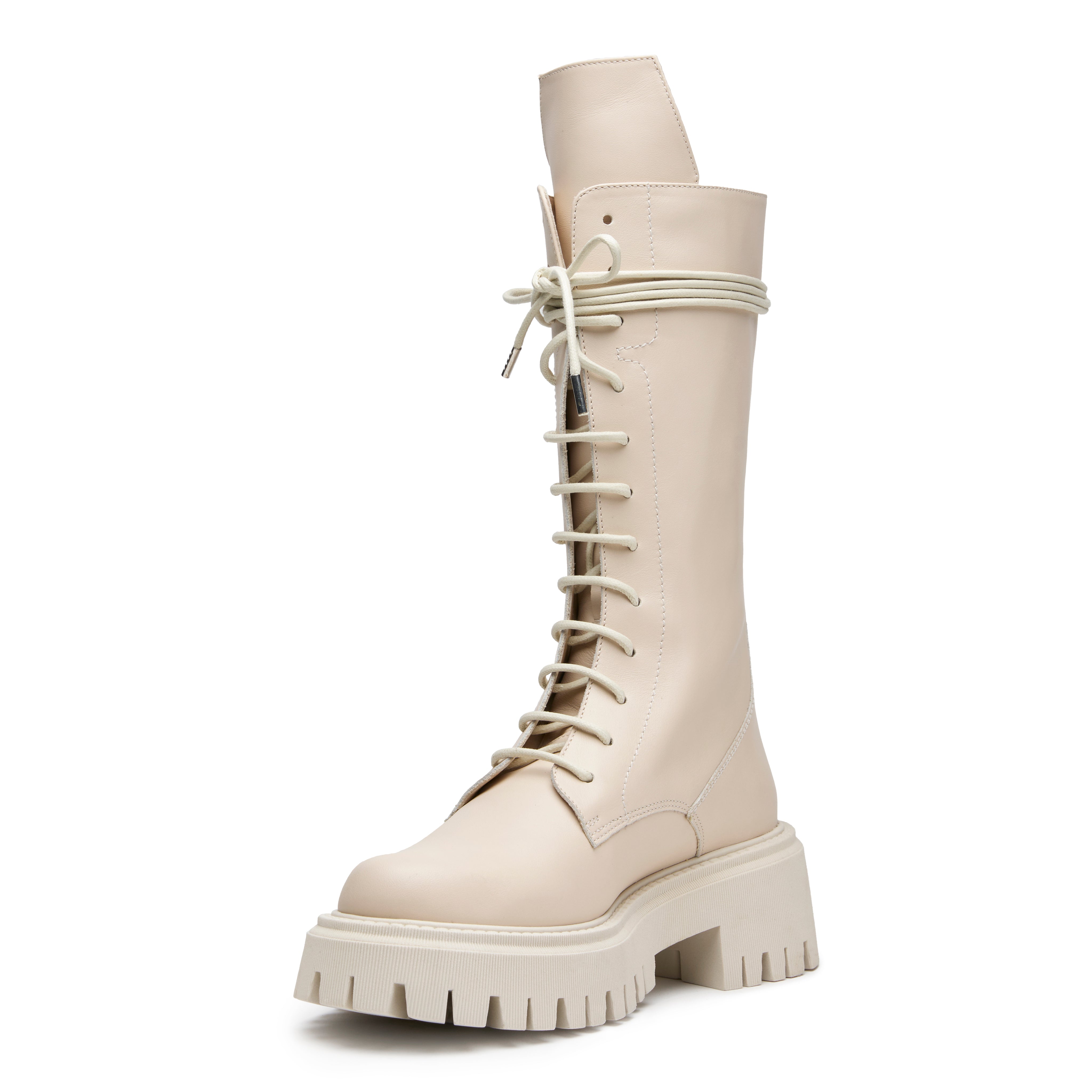 Realizzato in tessuto ultraleggero con un design distintivo e inconfondibile, questo stivale stringato in morbida pelle di vitello è al tempo stesso moderno e confortevole, rendendolo un'icona della Maison Mon Roi adatto ad ogni occasione.