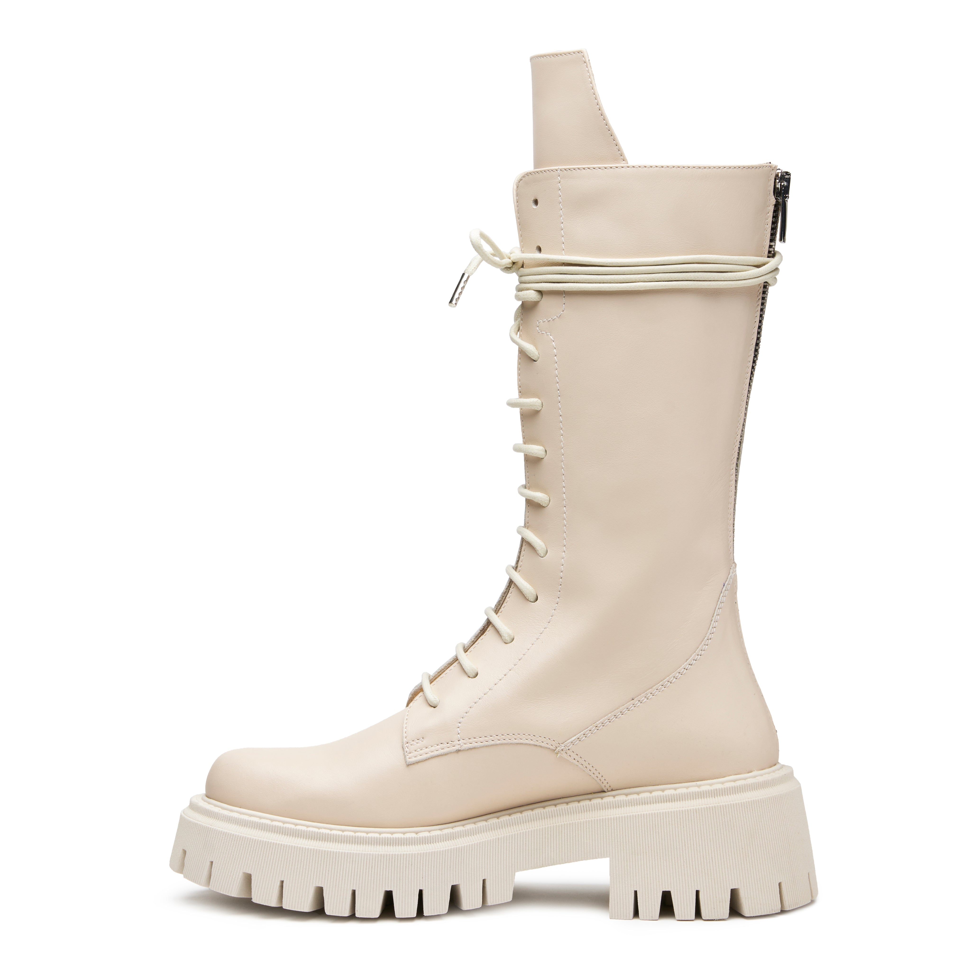 Uno stivale dalla tonalità innovativa e unica, ne valorizza la silhouette slanciata grazie alle sfumature chiare e luminose.