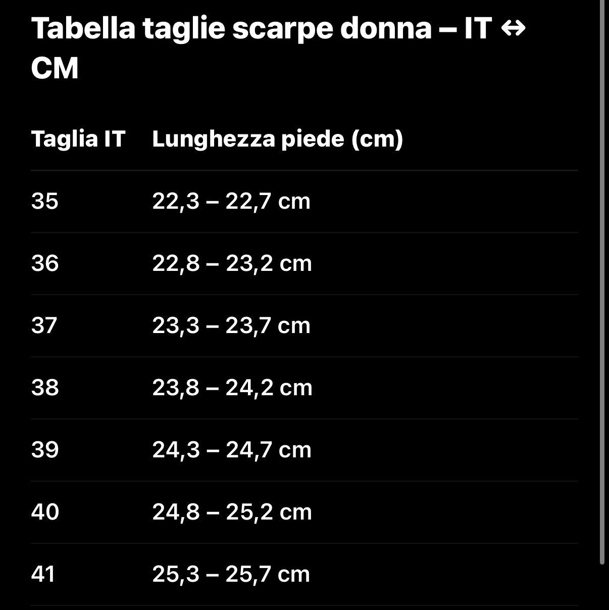 TABELLA TAGLIE CM